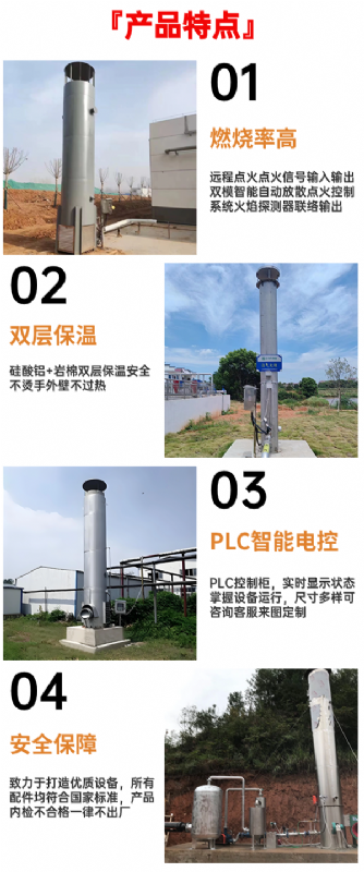 火炬主動導排燃燒,達到安全和除臭功能。通過增加的在線監測模塊(流量、燃燒溫